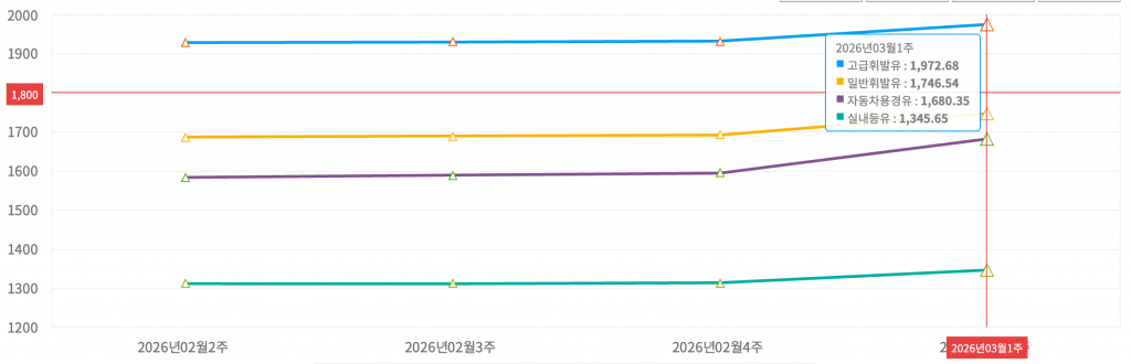- 시차 발생: 국제 유가가 내려가도 국내 주유소 가격에 반영되기까지는 통상 2~3주의 시차가 발생합니다. 따라서 “오늘 국제 유가 급락” 뉴스가 떴다면, 약 2주 뒤가 주유 적기입니다.